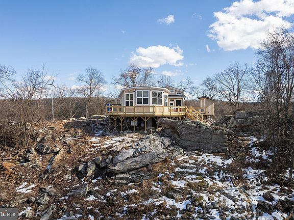 An Eagles View, Custom off grid cabin built to take in the spectacular western sunsets from atop Sidling Mt. Accessing this truly unique cabin you'll follow a rugged path through the boulders, then up onto the deck where you'll find wood fired sauna and comfortable area for outdoor relaxation. Entering the cabin, you'll hardly feel that you're indoors with the many large windows and high ceiling taking advantage of the great room design. with 2 bedrooms, one of them being a loft style with sitting area below. If you ever wanted a one of a kind get a way, you'll need to look at this one.