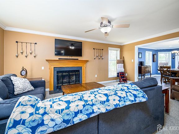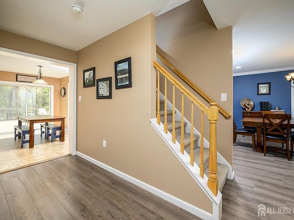 Discover this gorgeous 3 bedroom, 2.5 bath home, located on a semi-private drive. Relax & unwind on the inviting front porch. This welcoming outdoor space is a perfect way to begin or end your day and invites you to savor the tranquility of your front yard with U shaped driveway. Step inside and be greeted by a warm and inviting entryway with full sized coat closet. The main level features an open floor plan with a family room that showcases a wood burning fireplace and French doors that enter the formal dining room. The first floor also has a second large room for entertaining that can be updated to your liking, along with a separate laundry area. The open kitchen has an island and a sliding door out to the oversized deck. This fully fenced, wooded backyard is perfect for entertaining or just relaxing. With such a large level lot, there is plenty of room for a pool, basketball or tennis courts too. Possibility of subdividing as well. The spacious primary suite upstairs includes a dressing area, dual vanity, oversized closet and attached En-suite with Jacuzzi tub and separate shower. The second floor bedrooms and hallway were updated in 2022 with new carpet. The finished basement provides additional living space...a gym, home office, home theatre, men's den, playroom...whatever your needs might be. NEW roof in 2022. Enjoy the benefits of the Blue Ribbon school system in Spotswood. Conveniently located near schools, shopping and NYC bus & train lines. This home is sure to exceed your expectations and provide a warm and welcoming atmosphere for years to come. Don't miss the opportunity to own a truly exceptional property that combines style, comfort, and functionality.