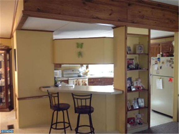 Price to Sell. Very open floor plan with vaulted ceilings in Living Room, Dining room and Master Bedroom. Open spacious Kitchen with double sink, garbage disposal and breakfast bar. Full appliance package included. Generous dining room with built in hutch. Laundry room with outside entrance to deck overlooks rear wooded yard. Half bath has room for conversion to full bath if new buyer would like. Huge walk-in closet in master bedroom with full bath. Second bedroom has double closets. Newer roof replaced in 2013. Thermal windows throughout. Off street parking for 3 cars and large shed for additional storage. Monthly ground rent includes sewer fees, trash removal, club house, putting green, pool, fitness center, common area maintenance and snow removal on street.