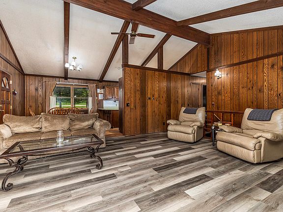 Welcome to this cozy three-bedroom lake house boasting a vaulted ceiling and a wood-burning fireplace in the living room, complemented by patio doors opening onto a Trex deck for serene views and relaxation amidst nature. A short walk through green space leads directly to the water's edge just beyond the backyard, creating the perfect setting for yard games or evening bonfires. Step downstairs to discover a second wood-burning fireplace, a family room, and a spacious rec room, all offering access to the expansive backyard, ideal for both indoor and outdoor family enjoyment. A detached 2.5-car garage features a convenient workbench and additional storage space, perfect for storing fishing gear, golf clubs, kayaks, lake toys, ATVs and more. Recent home improvements include fresh exterior paint, refinished wood floors in the kitchen and dining room, and new plank flooring in the living room and hallway. Additional updates comprise an updated septic system, a new roof installed in 2015, and a new A/C unit with a 10-year warranty installed in 2020. The home also includes an active radon mitigation system, Nest thermostat, and Fiber Internet connection. Additionally, available on a separate bill of sale are a 2017 Polaris Ranger and a 2023 Pontoon with a 10-year warranty on the motor and trailer. Covenants and restrictions apply. Annual HOA fees and dues apply.