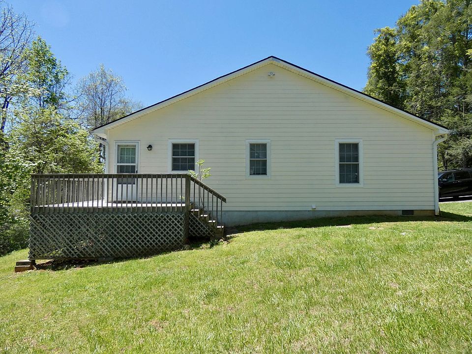 One level 2 bed/2 bath duplex in a great East Asheville spot, across from the Swannanoa River, close to parks, and convenient to highways and downtown Asheville. A shared paved parking area leads to the entry porch and deck with nice wooded views. Carpet is throughout the living room and bedrooms. The eat-in kitchen includes a door to the deck, and appliances include the dishwasher, smooth-top electric range, built-in microwave, and refrigerator. The laundry closet is off of the hall, and the washer and dryer are included! The primary bedroom's en suite bathroom is spacious and includes a shower/ bathtub and large walk-in closet. The second bedroom also has a walk-in closet, and the hall bathroom includes a stall shower. Central heat and air conditioning, all electric. Tenants responsible for all utilities, including electricity and water/sewer. Lawncare included. No Pets. No smoking. No cosigners.
