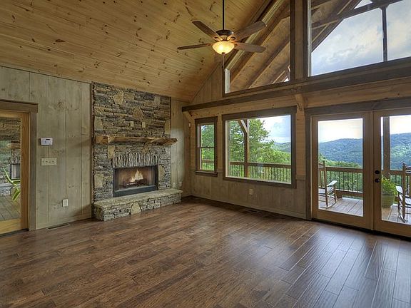 Untouched Long Range Mountain Views & Deeded Toccoa River Access....A rare find indeed! Stunning new rustic home close to historic downtown & recreation areas, true craftsman quality with rustic flair & distinct detail...4 bedroom/3.5 bath + loft lodge style cabin is perched on large wooded tract with towering hardwoods & lush landscape, lavish living area boasts sky high ceilings & glass front, unique & warm industrial finishes, plentiful glass, custom cabinetry w/granite & stone counters & showers, upscale fixtures, finished terrace level w/wet bar & bunk room, massive stone fireplaces inside & an oversize "party porch", private deeded river access just a short walk away, fabulous firepit, small end of road community w/ultimate privacy, convenient & tucked away! Hurry & customize finishes...