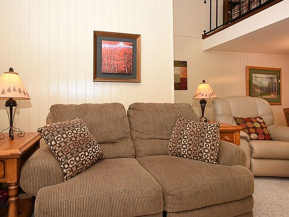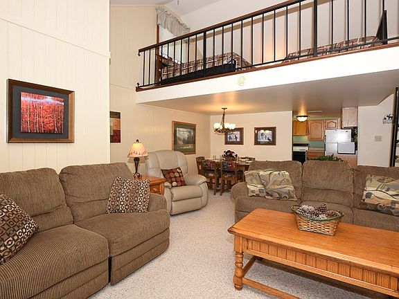 This charming condo is perfect for year-round fun. The golf course is right out your front door, and the slopes and other Resort activities are just a shuttle ride away. The living room boasts a gas fireplace and offers scenic views of the slopes. The loft area is used for extra sleeping, and a half bath has been added. This condo can comfortably sleep eight people. HOA Fees cover cable, gas, water/sewage, wood for fireplaces, maintenance of common areas, and much more. Homeowners have access to a recently refinished swimming pool and clubhouse. Great rental potential.