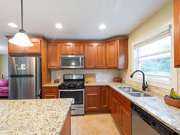 Sold upon reactivation. TOTALLY remodeled - inside & out! 4 bedroom, 2 bath home with finished basement and fenced backyard in beautiful Glen Ellyn Countryside. You'll love the light, bright open floor plan - living, dining, kitchen area - great for keeping an eye on the kids and pets during meal prep and piling on the couch with pillows and blankets to watch a movie after dinner. The kitchen features granite countertops, soft-close drawers and cabinet doors, island breakfast bar, ceramic tile floors and backsplash PLUS stainless steel appliances. 3 generous-sized bedrooms on main floor with full bath. The carpeted finished basement boasts a family room, 4th bedroom, full bath, laundry and storage. Have family BBQs on the deck overlooking the yard - perfect for lawn games and a fire pit. Awesome school district (15); kids get free breakfast and lunch. Convenient location close to highways (minutes to O'Hare), Metra, restaurants, shopping, the Prairie Path, parks and preserves (for kids and dogs). Everything is 2 years NEW! From the roof, siding, soffits, gutters, and deck to the windows, doors, flooring, lighting, kitchen, baths and basement. Home warranty too! Seriously motivated sellers due to job relocation. Don't wait! Make an appointment to see it today!