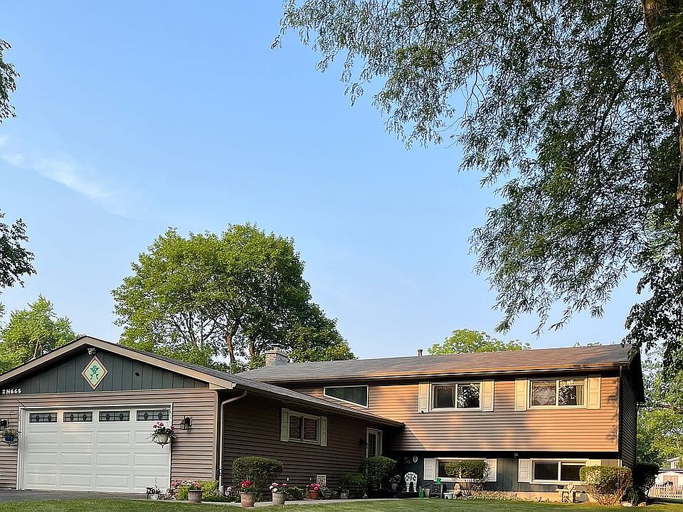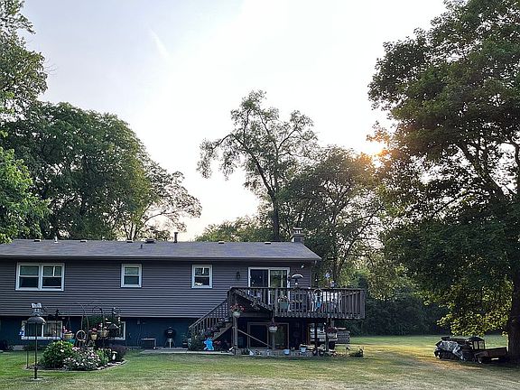 Spacious 5 bedroom. Attached garage. Hardwood in kitchen, and downstairs family room; carpeted bedrooms . Updated kitchen, baths. beautiful 1 and 1/3 acre yard. Mature trees, beautiful landscaping. Water view. Close to walking trails, large park, 4 baseball fields, soccer field, miniature golf. Large laundry room. Large Garage with workshop.