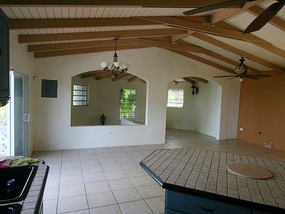 Located on the cool North side of St Thomas, this house features an open space living room/kitchen area on the the main level, opening on a balcony with ocean views, with adjoining 2 bedrooms and 1 bathroom. The lower level features a large family room with a walkout and 2 more bedrooms with a second bathroom. All bedrooms have their own air conditioner unit. Flat fenced yard with possibility of a wrap around driveway. Tool shed and dog kennel included. 20,000 gallon cistern. Quiet neighborhood. Year built is approximate based on typical age of houses in the neighborhood - Exclusively listed by John Foster Real Estate