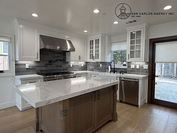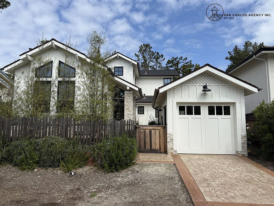 (LINWA) San Carlos Agency, Inc. offers this newer build (approx. four years old), unfurnished, three bed, two bath home in a convenient northeast Carmel- by-the-Sea location. Enter into a high, open beam ceiling living room with fireplace insert, wide plank wood floors, and an abundance of natural light. The living area connects seamlessly to an open dining room area as well as the adjacent chef's grade kitchen, which offers stainless steel appliances (refrigerator, gas range with hood, large wine fridge, under counter microwave, dishwasher, and farm sink), quartz countertops, gorgeous cabinetry, and an island with small eat-in counter. Off the kitchen is the primary bedroom with a walk-in closet, a spacious en-suite bath (his/her sinks; separate tub and shower), and a double-door that exits to the private back patio. Off the living area is the stairwell that goes up to the two guest bedrooms with shared bath (tub/shower combination) and washer/dryer (left as a courtesy to tenant). The yard is fully fenced. The detached garage has an automatic door with remote opener and fits one vehicle. Tenant pays all standard utilities. Landlord will provide a gardener. Physical address of property is 2nd Avenue 2 NE Guadalupe. Pet negotiable. No smoking.