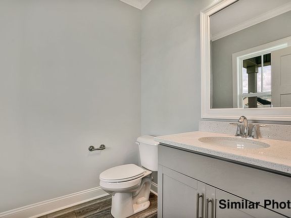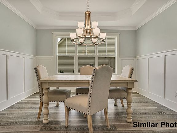 The Danbury, from Hardison Building is a two-story home with over 2800 sq. ft. of living space and offers four bedrooms and three and one-half baths. 1st-floor owner's suite, formal dining room that includes coffered ceilings and wainscoting, and an open concept kitchen and living area with a large island. The spacious owner's suite includes a vaulted ceiling, walk-in tile shower, and large walk-in closet. The laundry room and eat-in area are also located on the first floor. Three additional bedrooms, two full baths, and a loft finish out the second floor of this home.