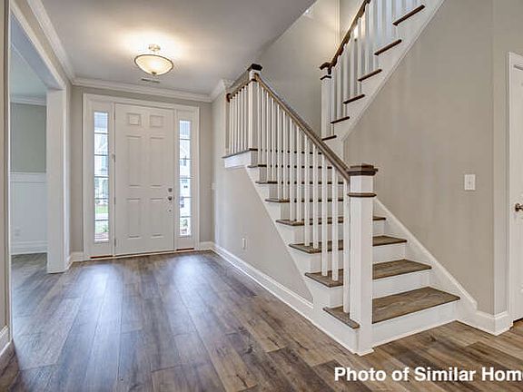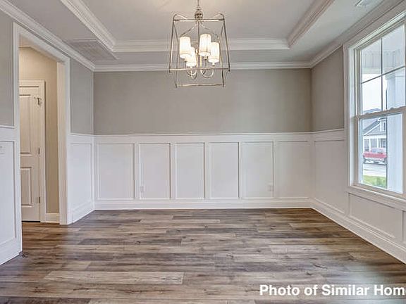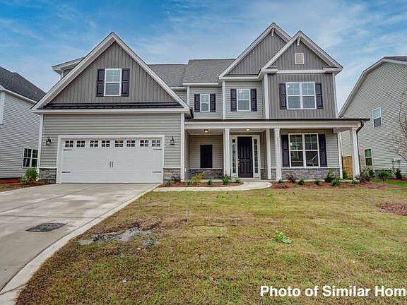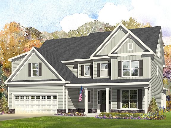 Welcome to the Masonboro, built by American Homesmith. The large covered front porch creates a great outdoor living area and welcomes you to this spacious 2 story, 5-bedroom, 3-4 bath home. The open concept plan showcases a formal dining room and a spacious kitchen overlooking the family room and a large breakfast area. No detail has been left behind in this home. This kitchen features a large center island, quartz countertops, tile backsplash, and stainless steel appliances including a natural gas cooktop with hood vent and wall oven and microwave, making this home perfect for entertaining. The bright and spacious family room has a shiplap fireplace with natural gas logs and opens to the 250 square foot covered porch. The first floor is completed by a guest suite and mudroom off of the garage. Upstairs there is plenty of room for all. The master suite boasts a trey ceiling, his and her sinks, walk-in shower, and a generous walk-in closet with custom wood shelving. Two additional bedrooms, bathroom, large rec room or fifth bedroom with bathroom, and a laundry room complete the upstairs. This home will feature a sodded and irrigated yard, gutters on the front and back of the home, lvp flooring on the first-floor living area, and natural gas tankless hot water heater.