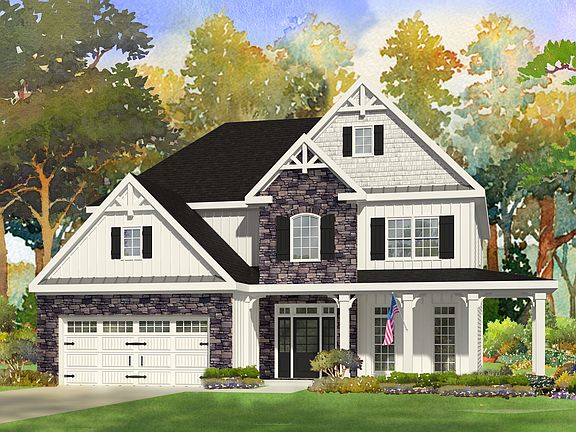 The large, covered wrap-around front porch creates a great outdoor living area and welcomes you to this spacious 2 story, 4-bedroom, 2.5-bath home. Upon entering the home, you will be wowed by the open 2 story foyer and dining room with tray ceiling. This home showcases a spacious kitchen overlooking the family room, breakfast area, and sitting room. No detail has been left behind in this home. The kitchen features quartz countertops, tile backsplash, stainless steel appliances, including a natural gas range, plus a large center island with a farmhouse sink. The bright and spacious family room has a cozy gas log fireplace with a shiplap surround and stunning coffered ceilings. For extra privacy and convenience, all 4 bedrooms and the laundry room are located on the 2nd floor. The owner's suite boasts a tray ceiling and spacious bathroom with a dual sink vanity, separate tub, and tiled shower along with a huge walk-in closet. All 3 of the secondary bedrooms have their own walk-in closets and share a second full bath.