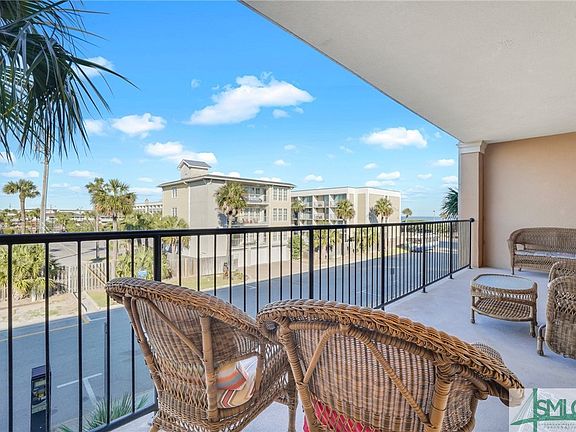 Amazing Brass Rail Villa's Condo with an Ocean View! 3 Bd's / 2 1/2Ba's sold furnished and ready to occupy or vacation rental! Commercial zoning with no rental restrictions! Fabulous location only a short walk to the beachfront, Tybee Pier, shopping, bars, and restaurants! Complex is gated, elevators to each unit, 2 on site pools and a hot tub! The unit offers an ideal open layout designed for entertaining and a large balcony with a view of the ocean! Must see unit!