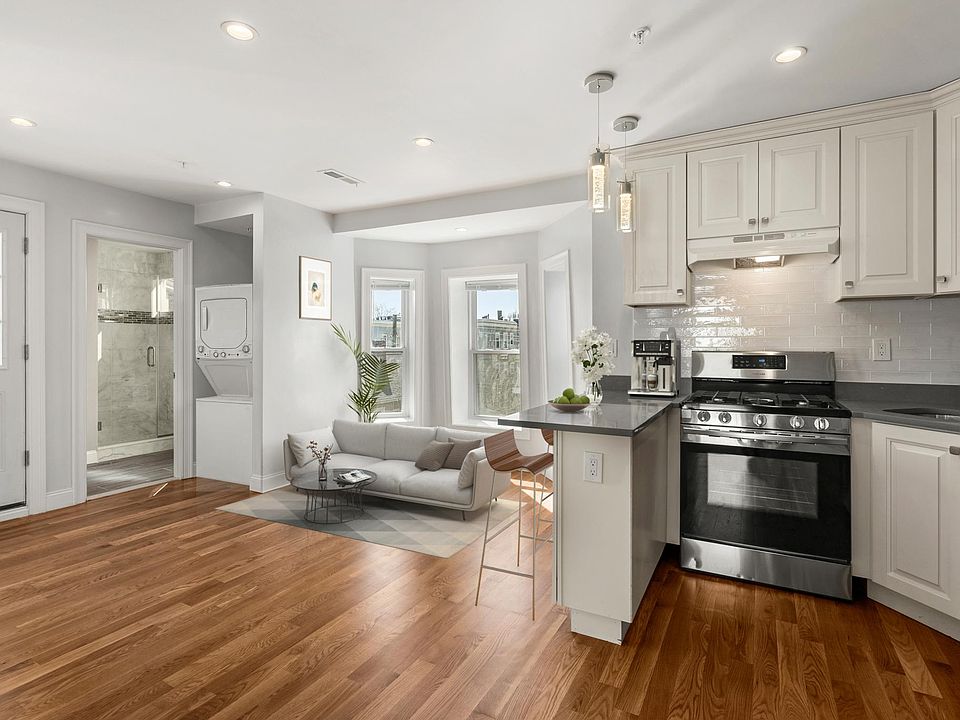 NO FEE! GUT RENOVATED AND NEVER LIVED IN! Available APRIL 1ST or MAY 1ST! Located in Cambridgeport, across from Old Morse Park is this completely gut renovated three family building. With attention to every detail, this top-floor unit has all the appointments to ensure the best and most comfortable living experience. The apartment is fitted with a new high-efficiency gas heating system, Ecobee Smart Thermostat, a new central air conditioning system, Thermafiber Fire and Sound Guard Unfaced Mineral Wool Insulation, a new sprinkler system with direct alarm connection to the fire department, a new in-unit washer and dryer, and new high-end Samsung and Whirlpool appliances. With gleaming hardwoods in all rooms and an open floors plan, this apartment is flooded with natural sunlight and has a quartz and stainless kitchen, marble tile bath with attractive brushed nickel hardware, a private roof deck, and comes with an off-street parking space, and additional private storage area, and a bike rack. Offering a terrific location, within approximately half mile are Magazine Beach, Trader Joes, Whole Foods, the Central Square Red Line Train, a variety of locally run coffee shops and restaurants, and the #47 bus is one block away. A cat may be considered case-by-case. This unit is a pleasure to show, book your viewing today!