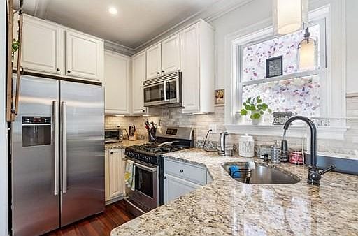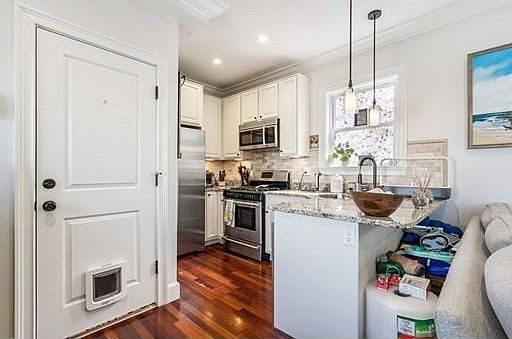 This sunny renovated two bedroom penthouse condo for rent offers a spacious floor plan with cherry hardwood floors, high ceilings, and an abundant amount of light. The living space is great for entertaining and has a gas fireplace. The modern kitchen provides plenty of storage, granite counters, and stainless steel appliances. The luxurious natural stone bath features a relaxing oversized jetted jacuzzi tub and separate shower. Enjoy stunning views from the private roof deck, as well as a second private deck off of the living level Excellent dedicated storage and included in-unit laundry complete this gem! This beautiful home is centrally located in Andrew square and abutting upcoming Washington Village residential/shopping area and provides access to the best of South Boston restaurants and shops.