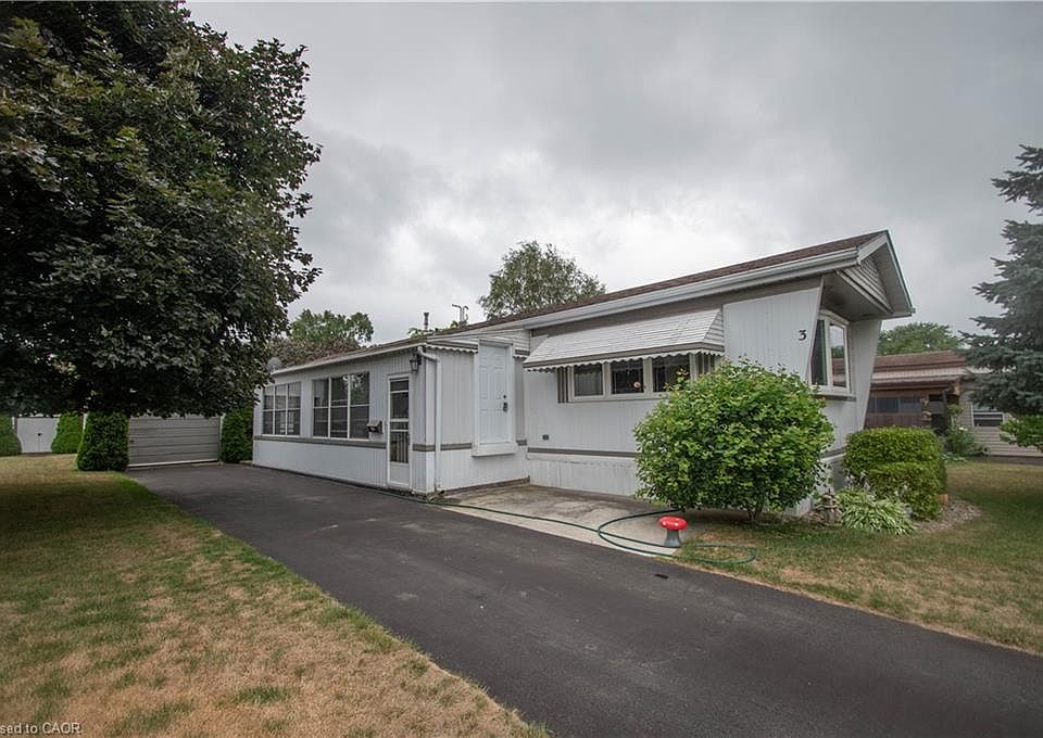 Welcome to year round living in beautiful Courtlea Park, just minutes to Delhi, Courtland and Tillsonburg. This mobile is wheelchair friendly, has 2 bedrooms, 1 bath, a large sunroom and offers everything you need for comfortable living. Upon entrance you will walk into a large sunroom then continue up the stairs to the main living area. Inside you will find a livingroom, spacious eat in kitchen, with plenty of cabinets, primary bedroom and secondary bedroom curently being used as an office. The exterior offers a single car garage/workshop with hydro, paved driveway and outdoor utility shed. The lot fee's for this mobile are $485.58/month which includes....park maintence, snow removal, garbage disposal, septic care and water maintenance ($19.90/month). This monthly lot fee will increase by $50.00 to the new owner. This home is priced right and perfect for first time home buyers or anyone looking to downsize.