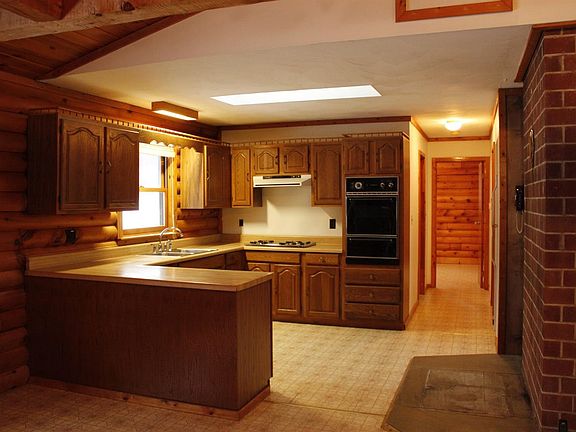 Cozy 2 bedroom log home has an open floor plan and cathedral ceiling in LR. Covered front porch and open back deck to enjoy the scenery. Love to cook? You will enjoy the walk in pantry and lots of counter space. The full unfinished basement allows for plenty of storage in addition to the over sized attached two car garage. Make the call and you can call this home.
