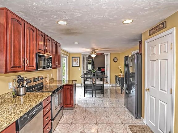 Great 3 Bedroom Gambrel Colonial home located on a quiet cul-de-sac in a very desirable neighborhood. This home has been well maintained and offers an Eat In kitchen w/granite counters, cherry cabinets, tile flooring, stainless appliances and a slider to the deck overlooking the backyard. The half bath with laundry is conveniently located just off the kitchen. The Dining Room offers hardwood flooring and the living room has wall to wall carpeting. The 24x24 Great Room is located just off the kitchen and features french doors, a floor to ceiling fireplace and a cathedral ceiling. There are three Bedrooms and 2 full baths located on the second floor. The Master Bedroom features a fireplace, walk in closet and a private Master Bath. The home has a great floor plan for entertaining family & friends. The unfinished basement offers expansion options should you need it. Vinyl Siding, Brick Front, 2 Car garage, private backyard, alarm system are just a few of the great amenities.