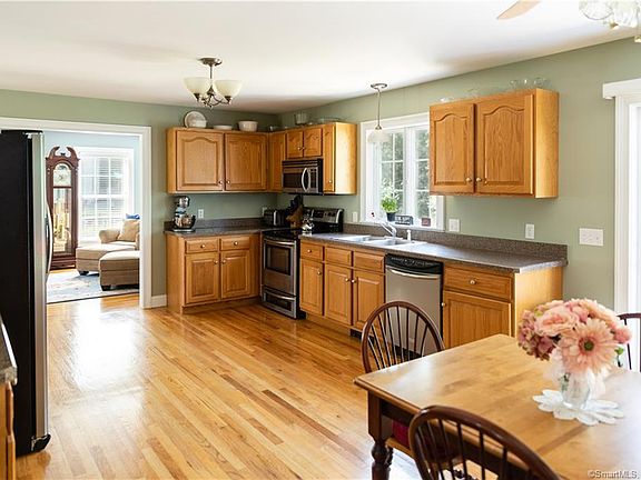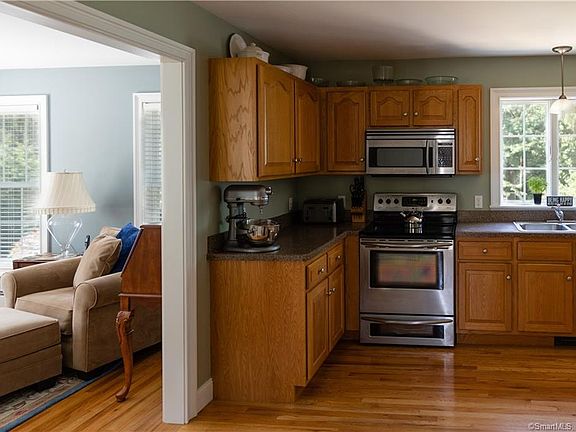 This beautifully kept home in a secluded cul-de-sac is perfect if you want a lot of room plus possibilities to expand Hardwood floors through out first level, stainless appliances in big kitchen with sliders out to deck overlooking your private yard on the edge of conservation land. Expansive family room with space enough for a pool table or in home theatre. Formal dining room has hardwood floors and french doors leading to kitchen. The living room has a wood burning fireplace and hardwood floors. The master bedroom suite has walk-in closet, an office nook, full bath with jetted tub and a fireplace Laundry is conveniently located on the 2nd floor. There is plenty of room for storage in the walk up attic and possibility to finish dry walk-out basement that already has rough-in for 3rd bath. Approximately 2-1/2 hours to Manhattan and 2 hours to Boston - Enjoy all that East Haddam has to offer- blue ribbon schools, Goodspeed Opera House, Gillette Castle State Park- a great community along the Connecticut River.