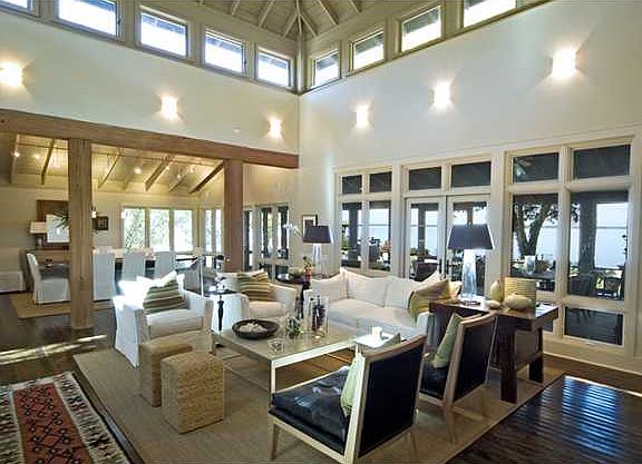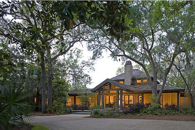 This is a short sale. Situated beneath the sweeping boughs of mature oaks on its one-acre Bay-front site, this re-envisioned dwelling combines its traditional, Southern-style exterior with contemporary, well-sequenced living spaces. Rustic, natural elements such as rough-sawn, Cypress wood beams are incorporated with refined finishes and modern fixtures to create a harmonious atmosphere that is artistically composed and at the same time comfortable and inviting to live in. A dramatic wood-burning fireplace in the living room dictates flow from the main entrance into either the private master bedroom suite, occupying the east end of this single-level home, or the dining and living rooms. The master bedroom features views to the Bay and access to a tremendous, 16 by 36-foot screened porch. A long hall with built-in dressers and access to two walk-in closets leads to a spa-like bath with solid surface stone floors and countertops, as well as access to a secluded outdoor shower and Orchid room. In the living room, the brick and stone chimney ascends the 24-foot high vaulted, wood-beam and window-lined ceiling, crisply painted to sharply contrast against the dark stained Pecan floors which carry throughout. Each living space opens onto a screened or covered porch, increasing the home's capacity for indoor to outdoor entertaining. A natural stone paved patio surrounded by lush landscaping leads to a 16 by 40-foot swimming pool and is gently terraced to 220 feet of Bay frontage where a dock extends to a boat house, equipped with four lifts. A detached cottage is convenient to the dock for relaxing after a day on the water, escaping the main house or accommodating guests. It features its own kitchenette and bath. The custom-designed Viking kitchen with all stainless steel appliances, solid Cherry wood cabinets, slate tile floors and solid slab granite countertops occupies a central location in the main house between the dining and family rooms, enjoying views over the patio to the Bay. Three guest bedrooms with vaulted, wood beam and paneled ceilings occupy the west end of the home. An exceptional floor plan and balanced use of materials creates a harmonious atmosphere that captures both the spirit of the original structure and conveniences of modern living.