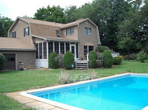 Beautiful setting for this single family home with legal one bedroom in-law. The units are separated by an oversized two car garage that has storage and is drive through. This one owner custom home was designed so the one bedroom apartment could be easy one level living with lots of privacy. The single family side has an eat in kitchen, fireplaced livingroom that opens upon to the three season sun porch and composite deck overlooking your patio and in ground pool. The formal dining room has built ins for lots of storage. There is also a pantry and laundry room and half bath off the kitchen. the second level boasts 4 bedrooms, large full bath, and lots of closet space. The grounds are landscaped with flowering trees and bushes, gardens, and gently sloping open fields that go all the way to the next street. There is also a large storage shed with power. The pool area has a custom metal fence. Easy case vinyl siding, architectual shingled roof, large basement and more! A pleasure to show