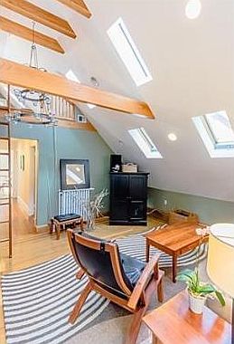 A luminous & distinctive 3-bedroom gem in the heart of Jamaica Plain! This spacious 3rd floor Victorian, situated on a private terrace, provides you with a refuge from the city bustle. Cathedral ceilings in the living room and the kitchen, combined with 13 skylights scattered throughout the unit, render an expansive connection to the outside world and can make even a cloudy winter s day seem bright. Further tranquility can be found in the garret loft in the center of your home as well as in the private deck and shared yard and garden. Convenient to the Southwest Corridor and Stony Brook T in one direction and Whole Foods and the shops and restaurants of Centre Street in the other. Practicality is reflected with in-unit laundry, central a/c, shared private parking, several sizeable closets and ample cabinet space. Don t miss your chance to turn this unique property into your home!