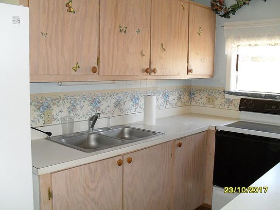 Two bedroom home with attached 2 car garage, attached metal carport and detached RV port. Two large storage units also convey. Property is completely chain link fenced--great for pet owners! Open land beyond the home belongs to FMI. Furnace is about 2 years old, not connected to ducts. Electric range and double door refrigerator, washer and dryer convey. HUGE PRICE REDUCTION!! Owner will carry a second mortgage.