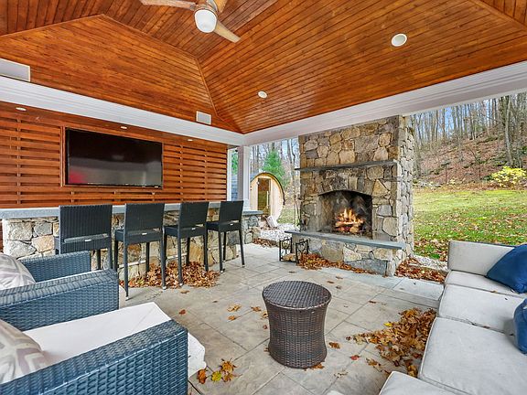 Stunning Renovated Colonial Retreat with Heated Pool & Cabana! Welcome to 3 Alexandra Drive, a beautifully renovated white Colonial tucked away on a private lot in one of New Fairfield's most desirable neighborhoods. This home perfectly blends classic charm with modern luxury, offering all the amenities you've been dreaming of! Step inside to a bright, inviting interior featuring a sophisticated color palette and thoughtful updates throughout. The renovated kitchen boasts stainless steel appliances, a center island with seating, and opens seamlessly to the family room with a cozy gas fireplace and an 8' slider leading to the expansive back deck-ideal for indoor-outdoor living. The dining room with French doors provides the perfect setting for formal gatherings, while the mudroom entry includes laundry and a convenient powder room. Upstairs, the primary suite impresses with two walk-in closets and a stunning spa-like bathroom. Two additional spacious bedrooms and a stylish full bath complete the upper level. The finished lower level offers a versatile den/rec room with a custom dry bar and built-ins. Step outside to your private backyard oasis designed for entertaining: an expansive deck and patio area, heated pool, outdoor cabana with fireplace and TV, and a luxurious outdoor sauna. This property truly has it all-comfort, style, and resort-like living right at home. Additional features include a 2-car garage, professional landscaping, all while being close for commuting.
