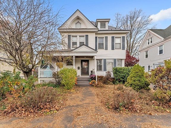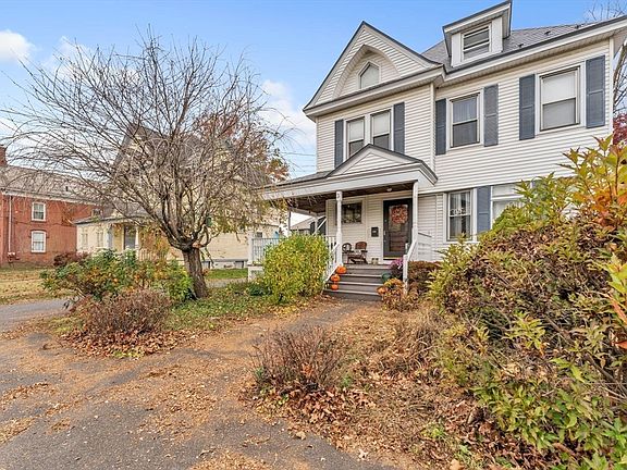 Motivated seller!! Expect space, classic style, and comfort in this grand four-bed, two-full-bath Colonial on a quiet street by the new school close to downtown Westfield! Step off the wrap-around porch into the beautiful, versatile first floor with an adorable eat-in kitchen and large butler's pantry, a laundry area, a gas fireplace with custom hand-tiled hearth and mantle, and a naturally-bright living area with a gorgeous plaster ceiling, original pocket doors, and lots of exposed wood. Take the main stairs (or the back stairway with a seat lift) to the four bedrooms on the second floor. Keep going up the stairs to the third floor with two large rooms currently used as a “teen suite.” You’ll love your utility bills with economical gas heat and central air, courtesy of Westfield Gas & Electric, and also appreciate and save money in the long run with the rebuilt chimney, brand new, fifty-year+ metal roof, electrical, and plumbing updates, and a nice Trex deck in the back and Trex on t