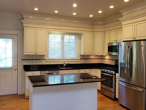 Modern and stylish freshly painted two or three bedroom townhouse featuring an open floor plan and 3 levels of living. No Pets. Exceptional location steps from Natick Center. Open and oversized chef's kitchen with center island, granite counters, stainless appliances, gas cooking opening to private rear deck. The generous family room features two story ceilings and interior balcony accented with generous trim, columns and crown molding. The second level offers two bedrooms with double closets, recessed lighting and a full bath with second floor laundry. The expansive lower level includes a gas fireplace, tiled floors, built-in cabinetry and plenty of storage space. Offering an additional full bath, this can be the perfect au pair suite or children's playroom. Great commuter location convenient to major routes yet steps from shopping, restaurants, the commuter rail, Farmer's Market and all that thriving Natick Center has to offer. No Pets. No Pets. Tenant responsible for utilities and snow removal. Landlord provides water and landscaping. First month's rent, second month's rent, security deposit of one month and broker fee of one month due upon signing lease. Showings start at the Rental Open House Sunday October 2, 1:00 PM to 2:00 PM Includes 500 square feet of fully finished basement with fireplace and full bath. No Pets.