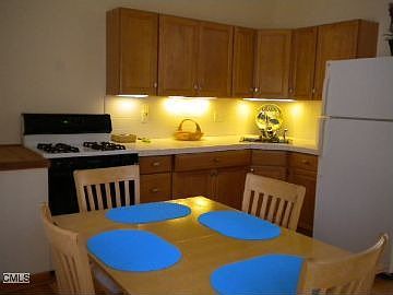 Spectacular 1 Bedroom Rental For 1 Year Lease. Living Room With Vaulted Ceiling And Gas Fireplace. Beautiful Kitchen.
