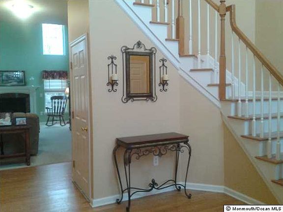 THE BEST of everything...beautiful floorplan with NEUTRAL DECOR, and it's located in desirable Farmingdale Woods, literally a stone's throw from MONMOUTH COUNTY border! So many features you've been searching for, incl. WRAP-AROUND FRONT PORCH, HARDWOOD FLOORS, 1ST-FLOOR BEDRM, sun-filled conservatory, a spacious eat-in KITCHEN W/DOUBLE OVENS & center island, huge master suite, princess suite, and a deck overlooking the IMMENSE BACK YARD!Location ideal for commuters with quick access to #195, #9