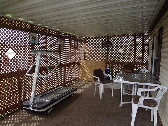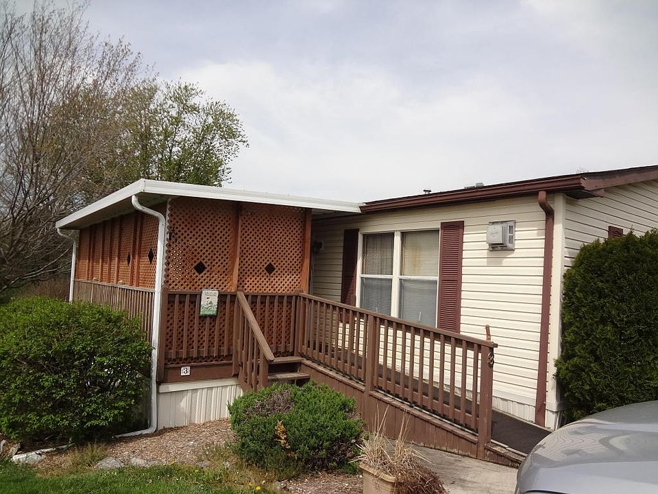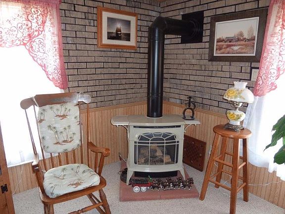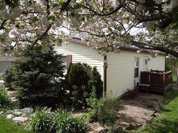 This 24'x40' manufactured home features 3 bedrooms, central air, 10'x20' private covered deck with ramp, 8'x14' shed & off street parking for 2 cars. Kitchen includes range and refrigerator and has a pantry & dining area with built in shelves. Large living room includes free standing gas fireplace & ceiling fan. Large windows allow lots of natural light. Neutral decor. Laundry room inc. washer and dryer & shelves for storage. 55+ lot rent inc.