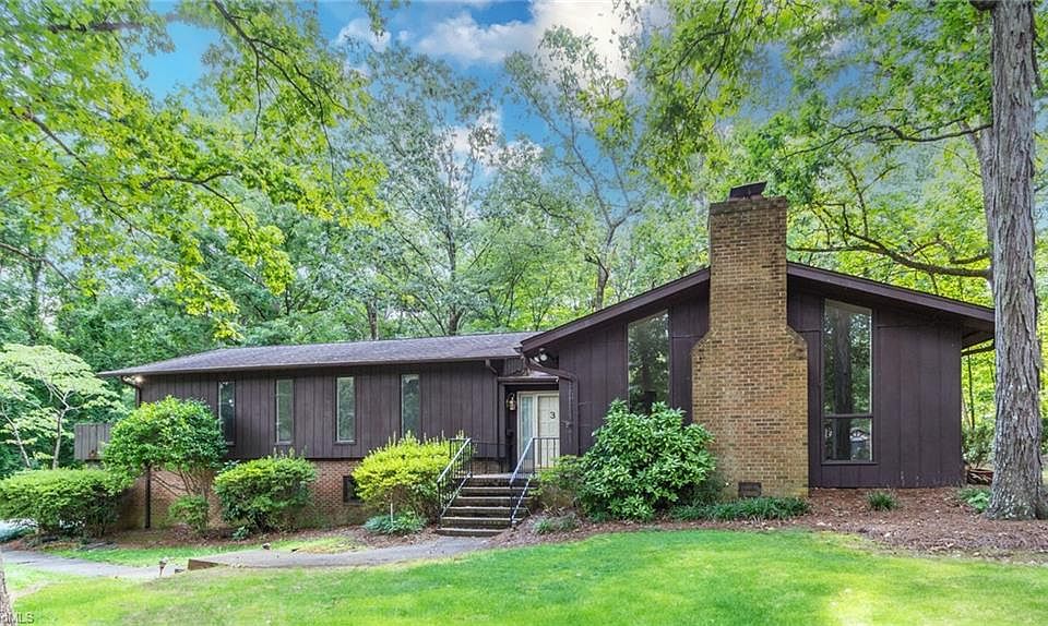Welcome home to 3 Anson Circle! This split-level home is nestled on 1.78 acres on a quiet cul-de-sac in the Sedgefield community. The home features 4 bedrooms and 2 ½ baths on the main level. The spacious primary bedroom with ensuite bath opens onto a private deck overlooking the wooded back yard. Three guest bedrooms with large closet on main level. The formal living and dining rooms feature vaulted ceilings and a gas fireplace. A cozy den with custom brick fireplace, vaulted and beamed ceilings, and built-in shelves adjoins the kitchen and breakfast room. A three-season screened-in porch overlooks the secluded wooded lot and is perfect for year-round living and entertaining. The home is near Sedgefield Country Club (home of the Wyndham PGA tournament) and Grandover Swim & Racquet. 15 min to PTI Airport and less than 5 minutes to major interstates (I-85, I-73, and I-40). Wonderful opportunity to add your special touches to this home!