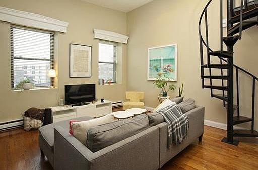 Feels like a 1 plus bedroom! A shining gem for the rental season, this crisply painted spacious studio with a sleeping loft offers comfort and luxury, all nestled in the heart of the city. Situated in an elevator building on the cusp of Back Bay, one can take advantage of all the shops and restaurants of both locations, as well as being minutes from Back Bay Station. The kitchen features dark granite counters and sleek white cabinets. Pendant lights hang down over the breakfast bar which has an overhang for casual eating. Adjacent is a nook ample enough for a dining table or for a home office. Large windows in the living room look out toward the Financial Center. There are dark oak hardwood floors and recessed lighting. A spiral staircase takes you up to a carpeted sleeping loft which can accommodate a queen sized mattress. There is a whole wall of storage cabinets, and common laundry on the first level. The building also has bike storage.