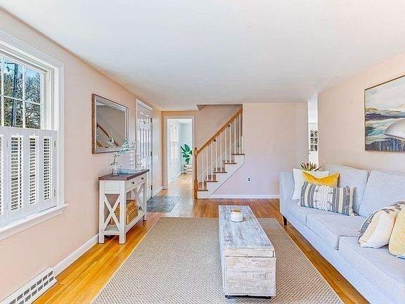 This quintessential Cape style home in the desirable Manomet area will not disappoint! Perched on a tree-lined street in a quiet desirable neighborhood, this classic New England home is close to area beaches, shopping and area amenities. The bright and sunny first floor features spacious living including a large family room with hardwood floors, separate dining area perfect for holiday gatherings, full bathroom, in-home office or first floor bedroom along with an the eat-in kitchen with direct access to the expansive deck overlooking the beautiful tree-lined yard. Upstairs you will find three bedrooms with brand new carpet and paint along with an additional full bathroom. The unfinished basement provides storage and the opportunity to finish for additional space. This well loved home is ready for its next chapter, so make this house yours to call home!