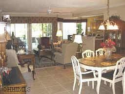 Incredible Ibis model home in Sun City, 3 bedroom, 2 baths, featuring a rare open floor plan accentuating a large great room, dining area & den, oak kitchen w/ stainless steel appliances, tile floors & large bay window in breakfast nook overlooking private backyard retreat, spacious screened-in porch/patio w/stunning views of tranquil neighborhood lagoon surrounded by superior landscaping, master bedroom w/seperate shower, garden tub, bay window & walk-in closet, crown molding throughout, laundry room, ceiling fans, 2 car garage and much more. An incredible value! (909113)