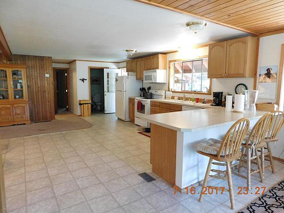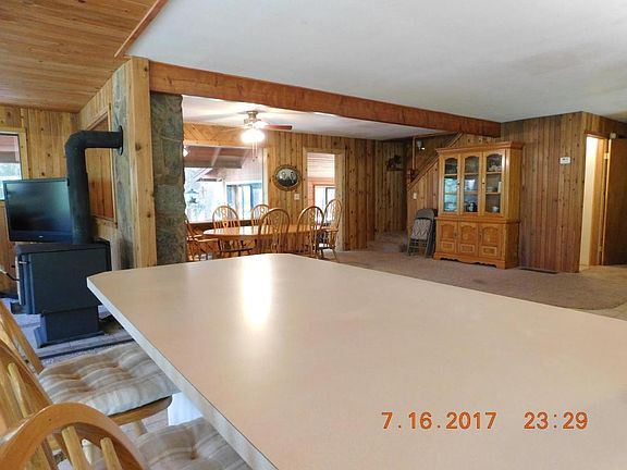 Abundant natural wood accents and sunlight throughout the open expanses of this comfortable country home on 3 timbered acres with Boulder Creek flowing by out front and acres of DNR land out the back door. Abundant outbuildings, RV space, raised beds and parked out grounds provide a very enjoyable outdoor setting. Some great work from home potential here-largest outbuilding has drive up loading dock type doors and lots of plugins and work space. (has couple carpet issues - so offering $3000 flooring allowance)