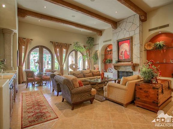 This wonderful Spanish/Mediterranean home was designed by Antonio Santamaria and is situated on a 1.2-acre view lot in Vista Dunes Estates. A high quality home featuring stacked Spanish tile roof, heavy wood beams & manicured landscaping. The interior features include wood beam ceilings, textured walls, baseboards, distressed wood cabinets & built-ins, carved interior doors. This home is unique with 2 Full Master Suites, 3 additional Bedrooms plus an office. A large gourmet kitchen with top of the line appliances & distressed wood cabinets with granite countertops opens to the family room. There is also a temperature controlled wine room. Outdoor living includes covered overhang, Viking BBQ, TV, Firepit, mist system plus a pebble pool, spa & waterfall. With commanding, panoramic southwest and west mountain views, this home has it all! Plus, there is a 4-car garage! A shared well provides water for irrigation & HOA use. High quality furnishings are included.
