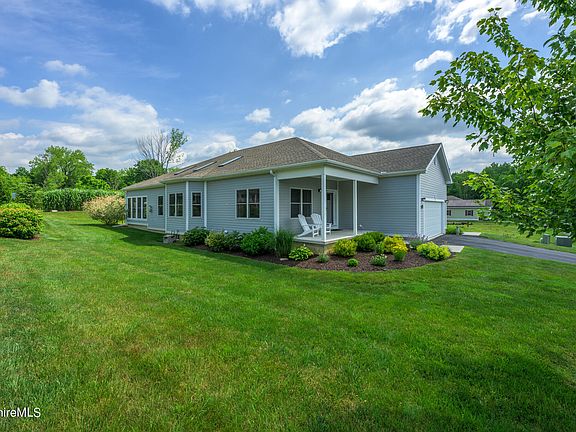 Beautiful, bright and spacious single level home on a corner lot in move-in condition offered by the original owners. Condo community is steps away from picturesque Pontoosuc Lake and 20 minutes to Tanglewood. Built in 2018 with an open floor plan, the home features a primary BR with ensuite bath, two guest bedrooms, a full guest bath, and a study/library (or formal DR). Beautiful warm oak flooring throughout. Living room with gas fireplace, granite kitchen-countertops, and skylights that drench the home with sunlight. A three-season screened back porch leads onto a terrace, while the front porch boasts a view of Bousquet Mountain. First floor laundry room, security system, and central air. Community members enjoy the use of a beautiful pool, tennis courts and clubhouse.