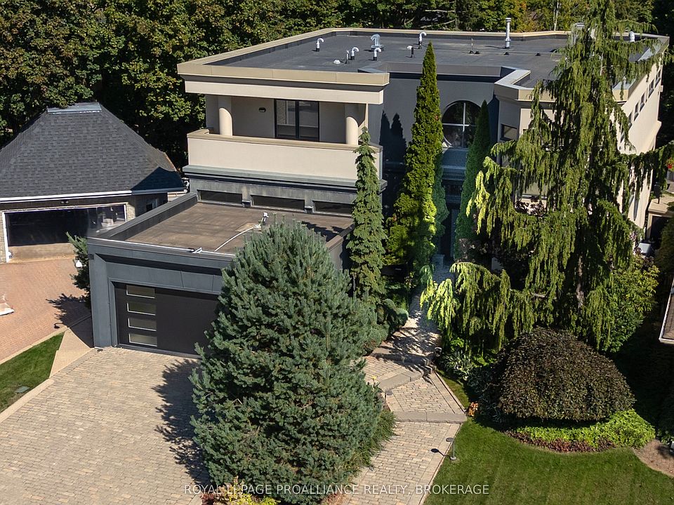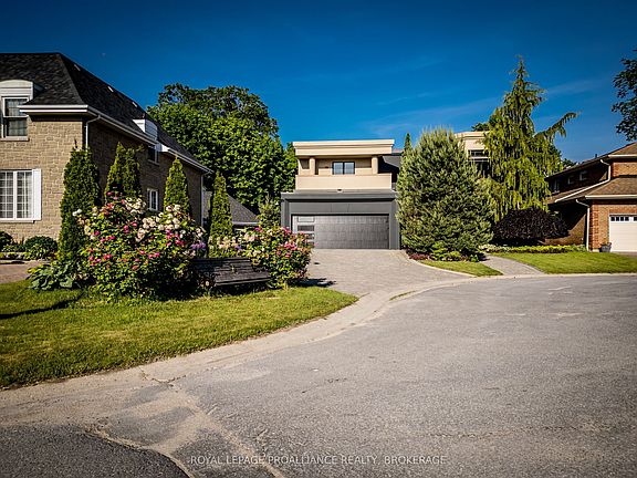 A rare blend of luxury, comfort, and family-focused design this custom-built masterpiece in Kingston's Calvin Park has it all. Located on a quiet cul-de-sac just minutes from Lake Ontario's waterfront trails, this 4+1 bedroom, 6-bath home offers over 6,000 square feet of sophisticated living, tailor-made for modern families. The striking two-tone exterior is elevated by newly refreshed stucco (2024), while the interior showcases expert craftsmanship with rich custom moldings, elegant panel work, and impeccable finishes. The 2-car garage has been fully drywalled and painted for a clean, polished look. On the lower level you'll find flexibility meets function: it features a spacious bedroom, full bath, family room, wet bar, and a comfortable area for children to play ideal for families who need adaptable space that grows with them. The main floor boasts a green-toned bathroom near the entrance, featuring a professionally restored marble countertop (2024)a refined touch that blends luxury with timeless style. Upstairs, the primary suite is a true retreat with a walk-in closet and a luxurious ensuite. Step outside into a private backyard oasis where an inground pool with cascading waterfalls is framed by stone walls and a new safety fence. A stone patio and backyard handrail create an ideal setting for outdoor entertaining and relaxed family time. This home has been extensively updated inside and out: new pool pump and irrigation controller (2024), outdoor AC unit (2023, with warranty), dual furnace heat exchanger replacements, and a new hot water tank (2024). Smart Nest thermostats and an upgraded security system add everyday ease and peace of mind. Close to Queens University, KGH, and vibrant downtown Kingston, this home balances thoughtful luxury with family-first comfort an exceptional space to grow, gather, and thrive.