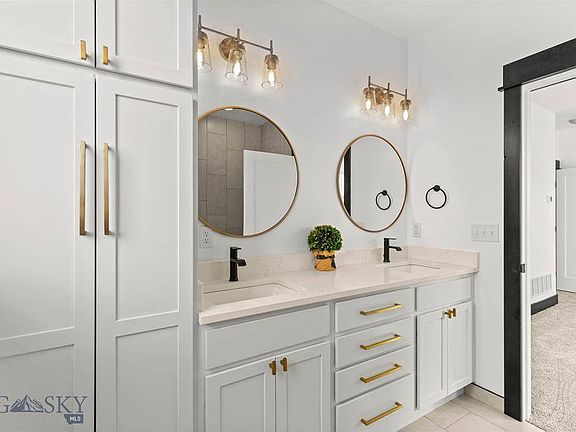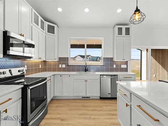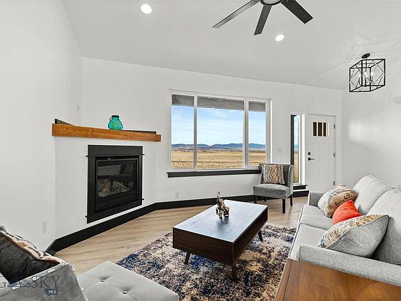 Luxury living in Three Forks, MT, where the plains meet the mountains, stunning views of 3 snow capped mountain ranges. Colter's Run is the premier Three Forks subdivision with large lots, equestrian trails, easy access to cosmopolitan areas of Bozeman, Helena, or Butte. This lavish home features modern tile floors, artistic kitchen backsplash and tiled bathroom floors and nearly 2 acres of land - room for a shop! The sleek, quartz countertops are installed in bathrooms, kitchen and laundry. The durable laminate floors are strong and fantastic for pets. SS appliances, smooth-top glass range and exterior vented over the range microwave. The walk-in closets offer plenty of storage. Farmhouse white walls, with stained rustic alder trim give a modern, mountain look. A hemlock mantle is mounted over the propane gas fireplace. HVAC system includes 3 zones for easy climate control and air conditioning. The over-sized, 976 SF, 3 car garage is finished and ready for your Montana toys.