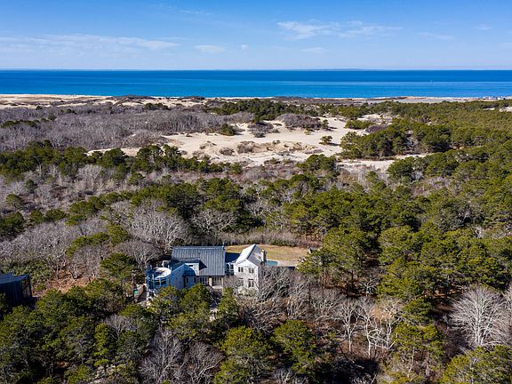This grand West End gated estate with views of the Ocean and dunes, is one of the largest private lots in Provincetown with nearly an acre of land bordering the National Seashore. The modern contemporary three level home was custom designed and includes 10 concrete columns, extensive built-ins, over 50 windows, 3 fireplaces, separate heating/ac zoning, and hardwood floors throughout. The house also boasts a roof-top deck with ocean views, an in-ground swimming pool patio, and outdoor shower. The upper two levels include 5000sf of living space, and the lower level has a 458sf Guest Suite, an 800sf 3-car garage with glass doors, as well as 600sf of private storage. Recent renovations include a new 400sf addition with 14 ceilings and a wall of windows with views of the National Seashore, an updated three season room, brand new kitchen appliances, new Pella windows doors, a private fence surrounding the entire lot for privacy, new gated entrance, painting of exterior decks, and exterior lighting. This is truly a special opportunity not be missed!