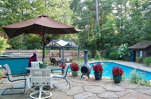 - Exterior Features: Porch, Patio, Hot Tub/Spa, Gutters, Pool - Inground Heated, Fenced Yard, Cabana, Pool - Inground, Storage Shed