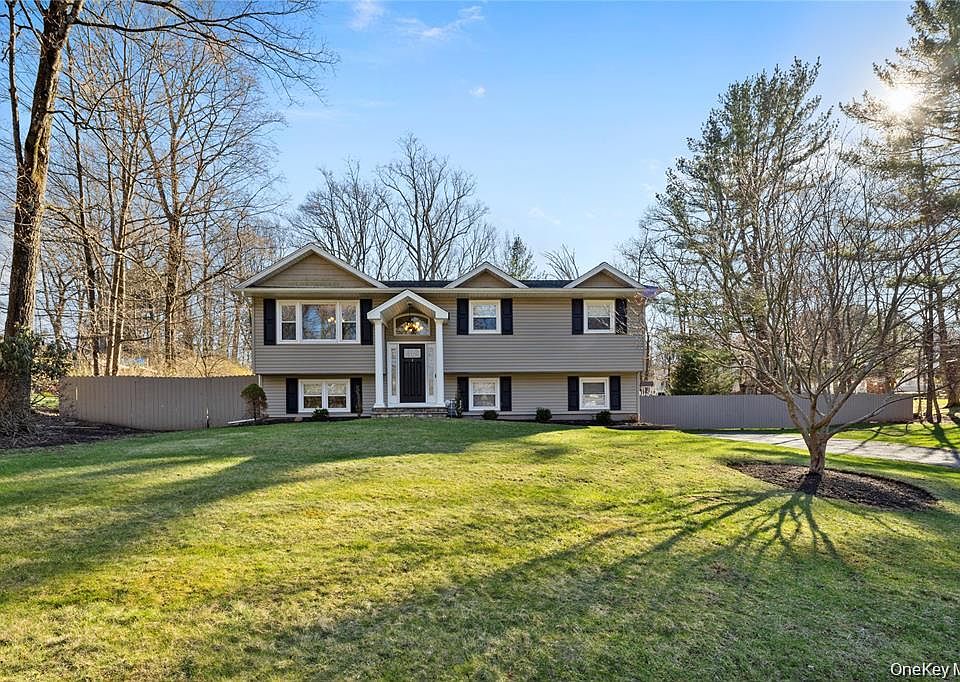 Nestled in a peaceful cul-de-sac in Airmont, NY, this beautifully maintained bi-level home is a true gem! With 5 spacious bedrooms, 2 full baths, and a stunning custom kitchen featuring quartz countertops and Kraftmaid cabinets, this home has it all. The great room extension with vaulted ceilings, added in 2018, provides the perfect space for entertaining. Step outside and enjoy the breathtaking views of the private backyard oasis, perfectly blending serene woods and lush greenery. The expansive yard offers ample space for outdoor living, entertaining, and creating unforgettable memories with family and friends. Recent upgrades include full insulation and a new hot water tank in 2024