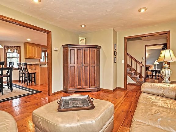 Fantastic property on nearly 1 1/2 acres! Do not miss this well kept, updated 4 bedroom 2.5 bath colonial.First floor features good sized kitchen with lots of cabinets and counter space.All appliances included.Wood floors throughout spacious open 1st floor.Family room w/pellet stove, living room and dining room all great for entertaining. Sun room has cathedral ceiling & oversized windows with lots of natural light for that outdoor feeling.Huge deck off dining room & sun room perfect for grilling and outside gatherings. Master suite has two closets,full bath w/newly resurfaced shower stall (2019),granite counters,tile floor.Second floor includes three add'l bedrooms and full bath also w/granite counters,tile floor.Roof 2003 30 yr architectural shingles. Lots of privacy and great space inside and out for getting together w/family and friends. Large back yard shed for additional storage.Convenient to shopping,restaurants,biking/walking trails & golf.Franklin commuter rail & 495 nearby.