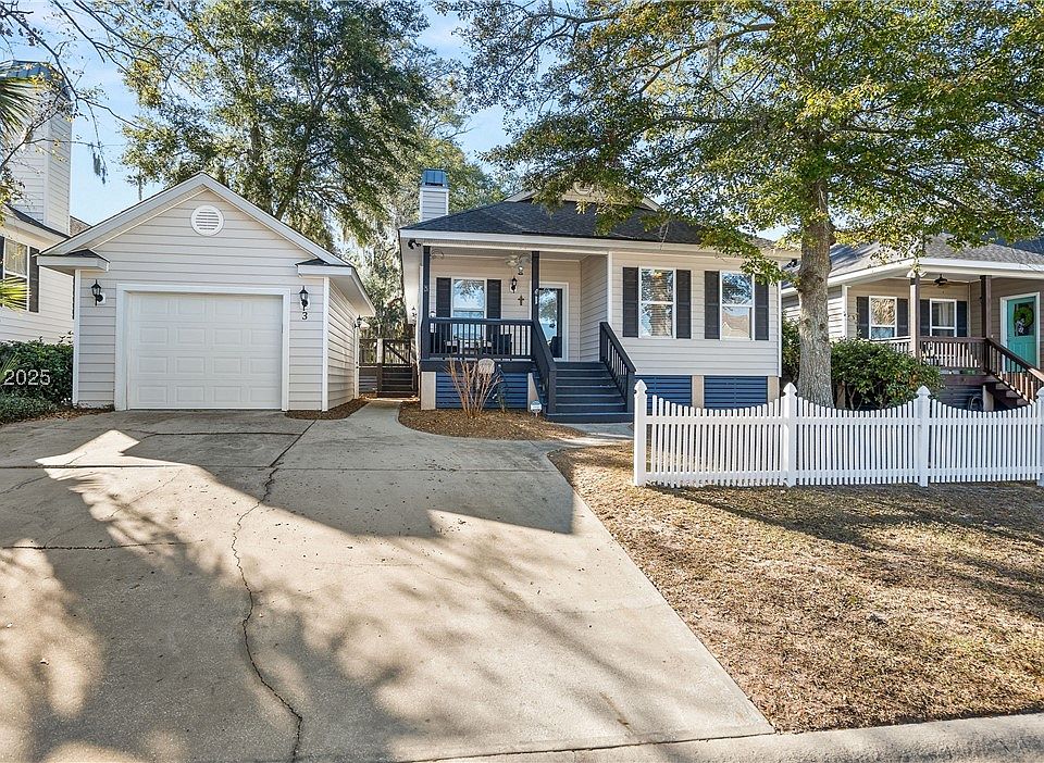 Nestled on a cul-de-sac, in a gated waterfront community, this 3-bedroom, 2-bath gem features an open-concept kitchen & living area with a cozy fireplace, perfect for gatherings. Kitchen offers plenty of cabinet & counter space with counter top bar open to the dining area. Split floor plan ensures privacy, with the owner's suite offering a spacious retreat, complete w/ample storage, walk-in shower & seperate garden soaking tub. Enjoy outdoor living on the charming front & back porches. Detached one-car garage adds convenience. Community boasts a pool, playground & scenic leisure trails. Thoughtful owner upgrades make this home move-in ready.
