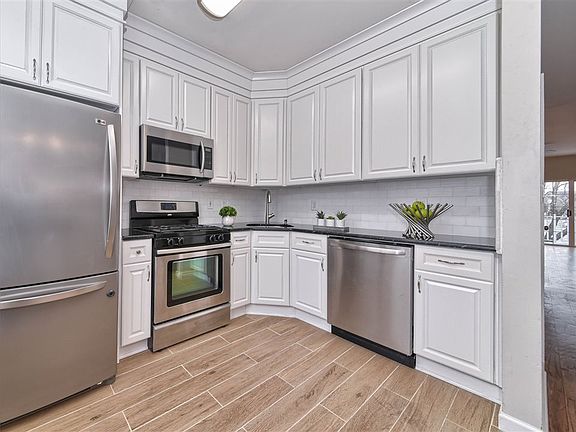 Enjoy life in this beautiful two to three bedroom Townhouse with wood floors, high ceilings and plenty of windows that deliver lots of natural sunlight. This move- in ready home features central air and its own laundry room with a washer and dryer. It includes an upgraded kitchen with granite countertops, 42 inch soft-close cabinets and drawers, stainless steel appliances and custom lighting. At approximately 1,676 square feet, you will find a double sink vanity, soaking tub and shower stall in the master bath. Parking is a breeze because this home has a single car garage and its own dedicated driveway space. This gated walking- friendly community of Society Hill features sidewalks and beautiful tree-lined streets. Plus, there is a waterfront promenade that is perfect for your outdoor enjoyment in addition to the private balcony and patio this home offers. This home is close to the Hudson-Bergen Light Rail and walking distance to a Bus Route. Hurry. This One is Sure to Sell Fast!