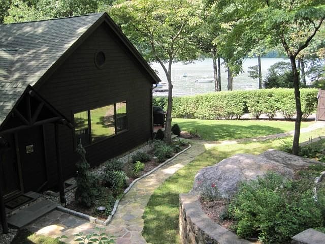 "The Lodge at Candlewood Lake". This one-of-a-kind home built as a lodge in 1945 features a 30'X40' great room with a 20 ft. cathedral ceiling, exposed trusses and original floor-to-ceiling stone fireplace. Just over an hour from NYC and minutes from Federal Road, this amazing property boasts exceptional lake views, single-story living, hardwood floors, beautiful picture windows and french doors. With the private community beach out the back door, and an additional wood stove, this is ideal year-round living. Truly a must-see property.