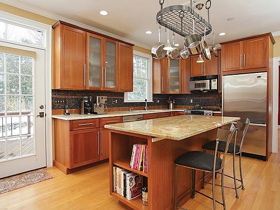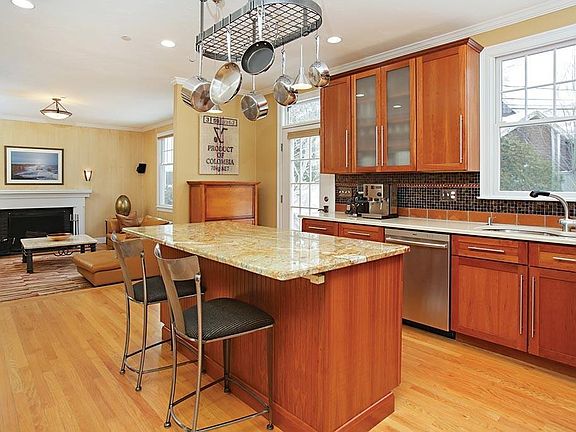 Situated on a cul-de-sac in a great location, this stunning four bedroom, two and one-half bathroom residence offers over 2,500 square feet of living space. The interior has a contemporary flair with warm wood tones throughout. Features include a gracious foyer, a mudroom entry area off the two-car garage, and a handsome custom kitchen with fine cabinetry, a walk-in pantry, quartz countertops, stainless steel appliances, and a spacious granite-topped island. The adjacent family room has a wood-burning fireplace and access to a large deck built in 2008. The second level has four bedrooms which includes a spacious master bedroom suite with a walk-in closet, a separate sitting area, and a bathroom with a Jacuzzi tub and a double vanity. Amenities offered are two-zone Hydro-Air heat and air-conditioning, an irrigation system, and an alarm system. The property provides a wonderful setting with its fenced-in grounds, gorgeous mature plantings and affords easy access to the Commuter Rail/Bus.