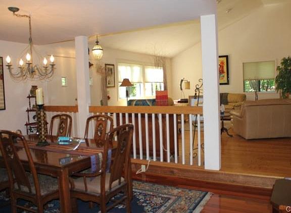 Don't miss this lovely home with a wonderful floor plan for entertaining. The living room features hardwood floors, soaring ceiling & fireplace. The main level family room & eat-in kitchen lead to the screened in porch for warm weather fun. Master bedroom suite is on the main level with an additional 2 bedrooms on the upper level with a full bath. Finished lower level offers a playroom and storage. There is an in-law suite with its own entrance above the 2 car garage. Located on a serene cul-de-sac street close to parks, downtown & the train station. Come enjoy all that this wonderful home has to offer and the charms of Bethel.