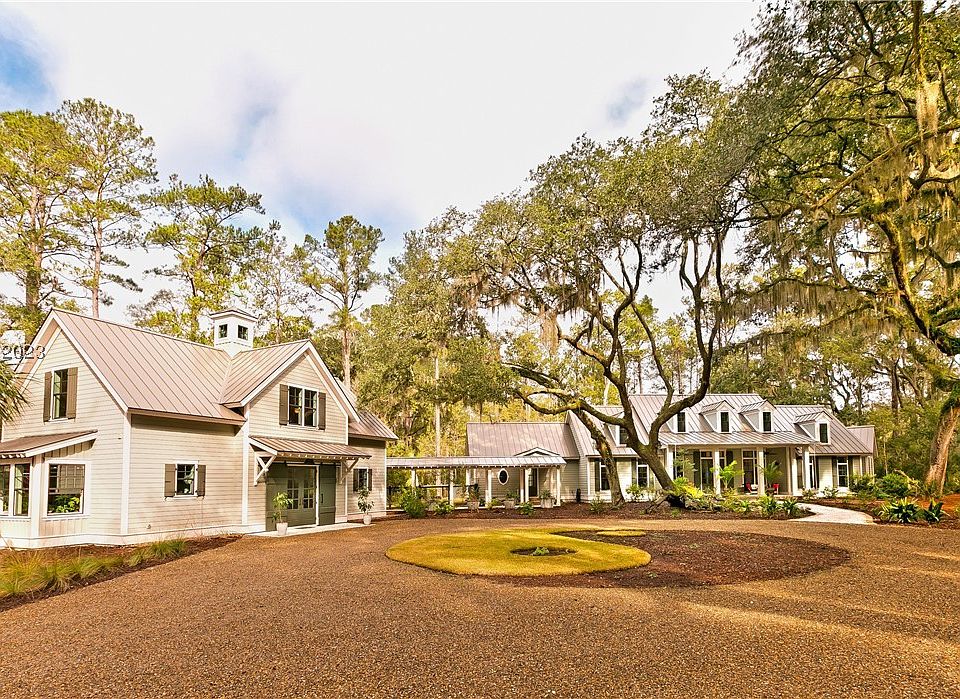 This private 2018 4th green Spring Island estate features custom woodwork, a 1200 bottle wine cellar, & a 16’ glass door to the generous screened porch. The roomy primary includes a huge ensuite with heated floor & generous walk-in closet. The guest suite also has a private ensuite & custom shiplap ceiling. The massive kitchen has tons of custom storage & the yard features a heated zero entry pool with living jasmine fence. A 2 bed, 2 bath carriage house guest apartment has an elevator for easy access. No detail has been left out, with a dog yard, potting shed, bronze hardware, granite & marble throughout, & an easy on/off island location.